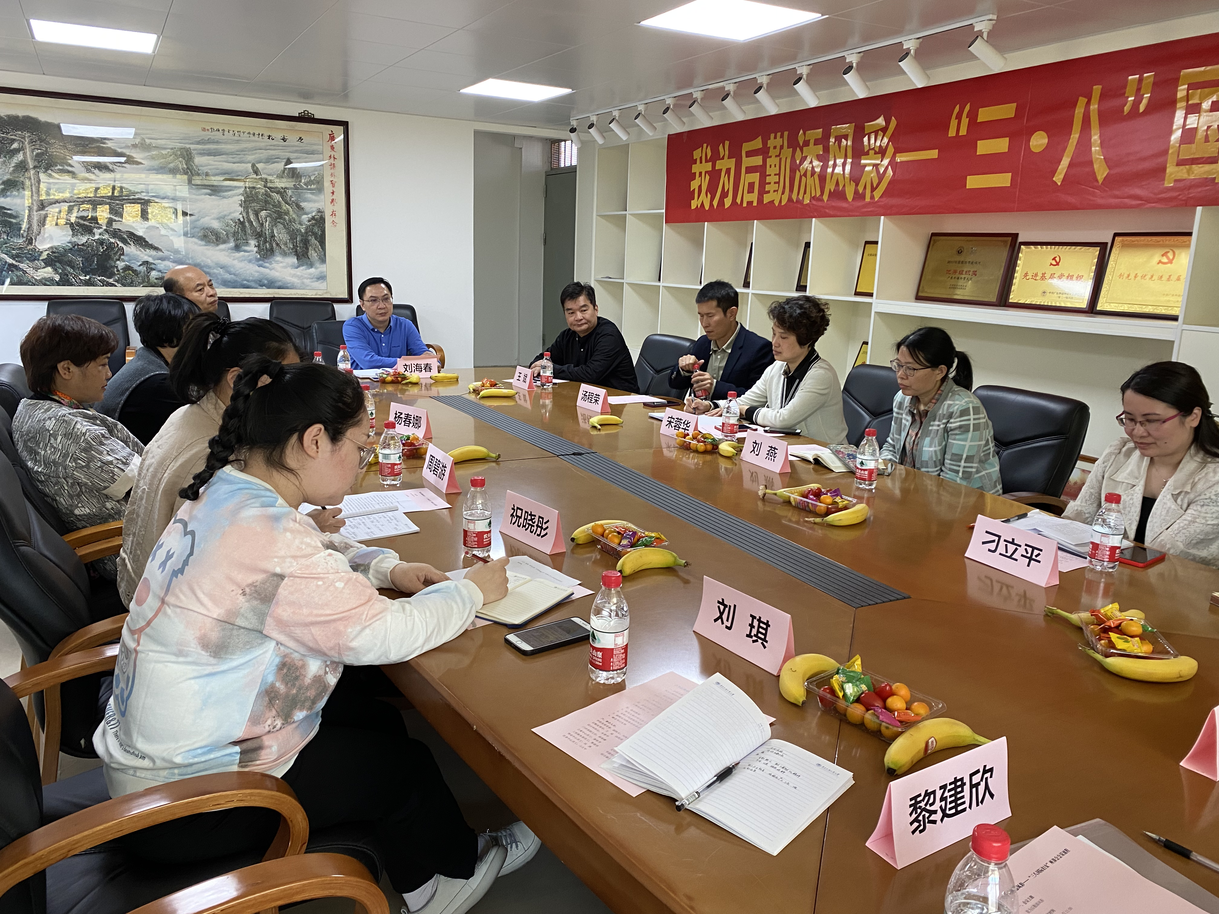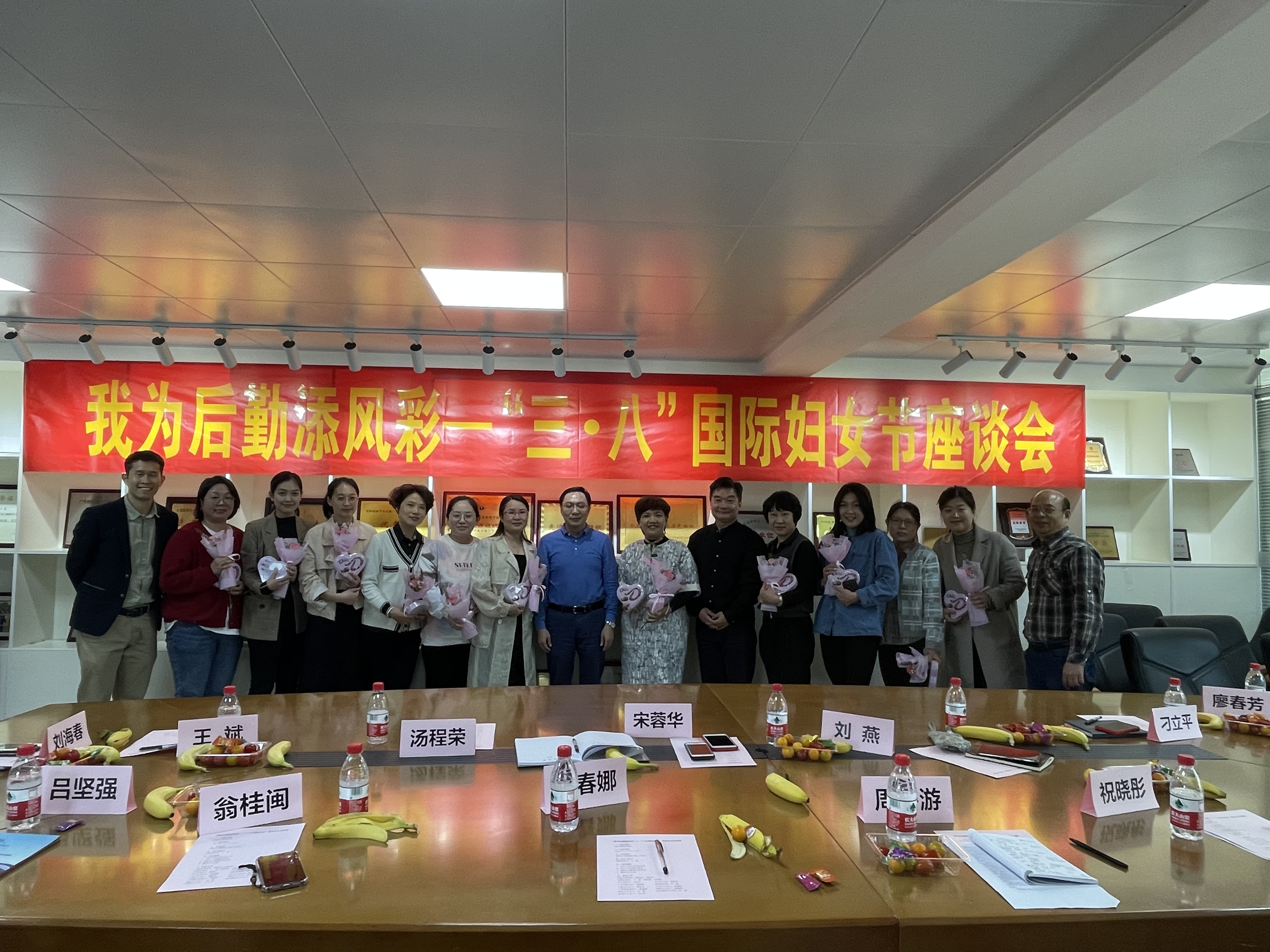 会议最后,刘海春副校长强调,女教工在广外的发展历史中作出了卓越的贡献,并提出了以下几点要求:一是要落实和保障女性的福利和权益。二是要鼓励女教工继续发挥半边天作用,主动积极作为,为后勤做贡献,为广外添风采。三是希望后勤的女员工们能够在生活和工作中扮演好各种角色。特别是在国家越来越重视家庭教育的前提下,发挥好女性的关键作用,更好地平衡好工作和生活。刘海春副校长还为大家送上了特意准备的暖意融融的鲜花和巧克力以表达对大家的节日问候和祝福。
