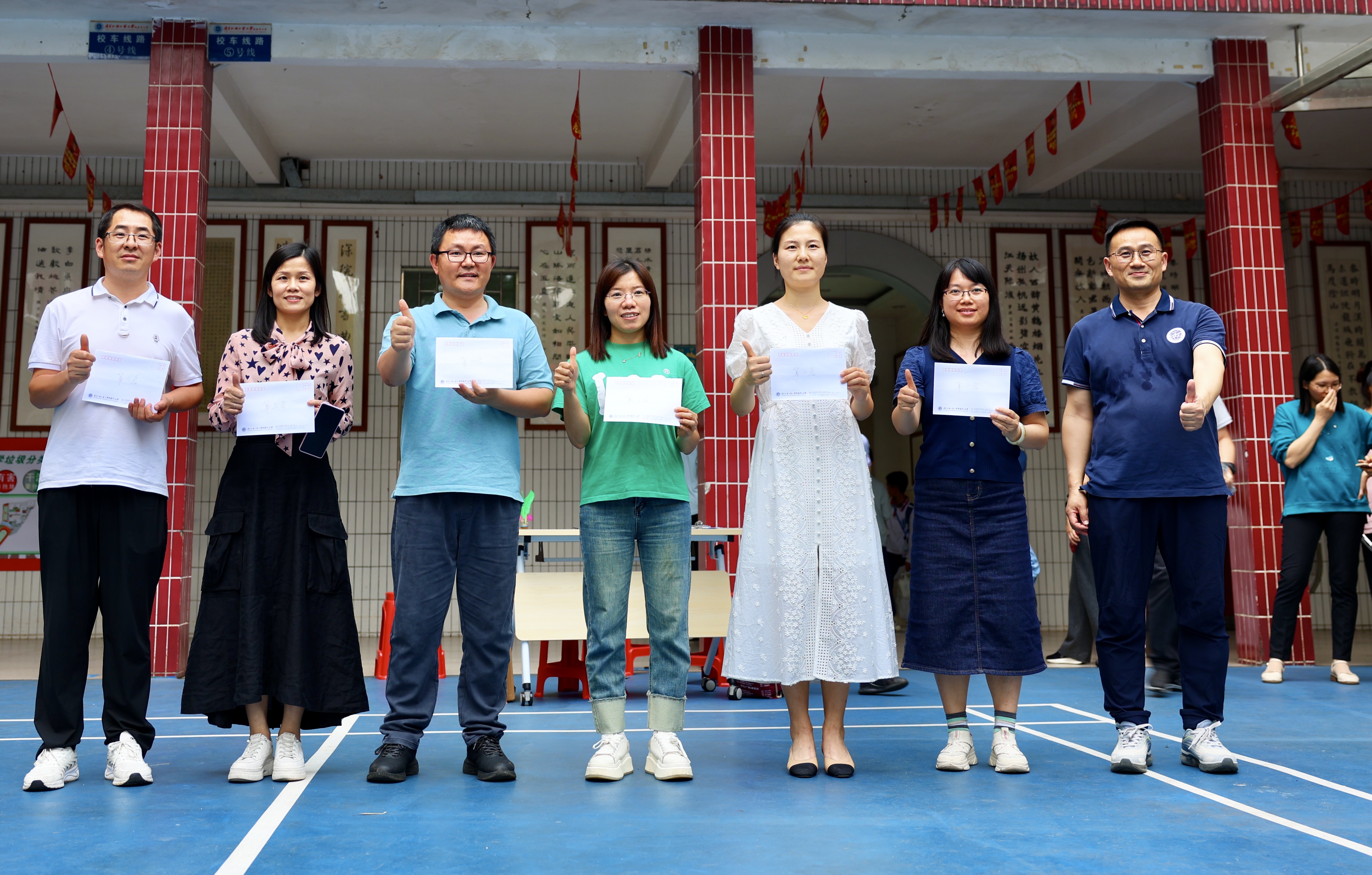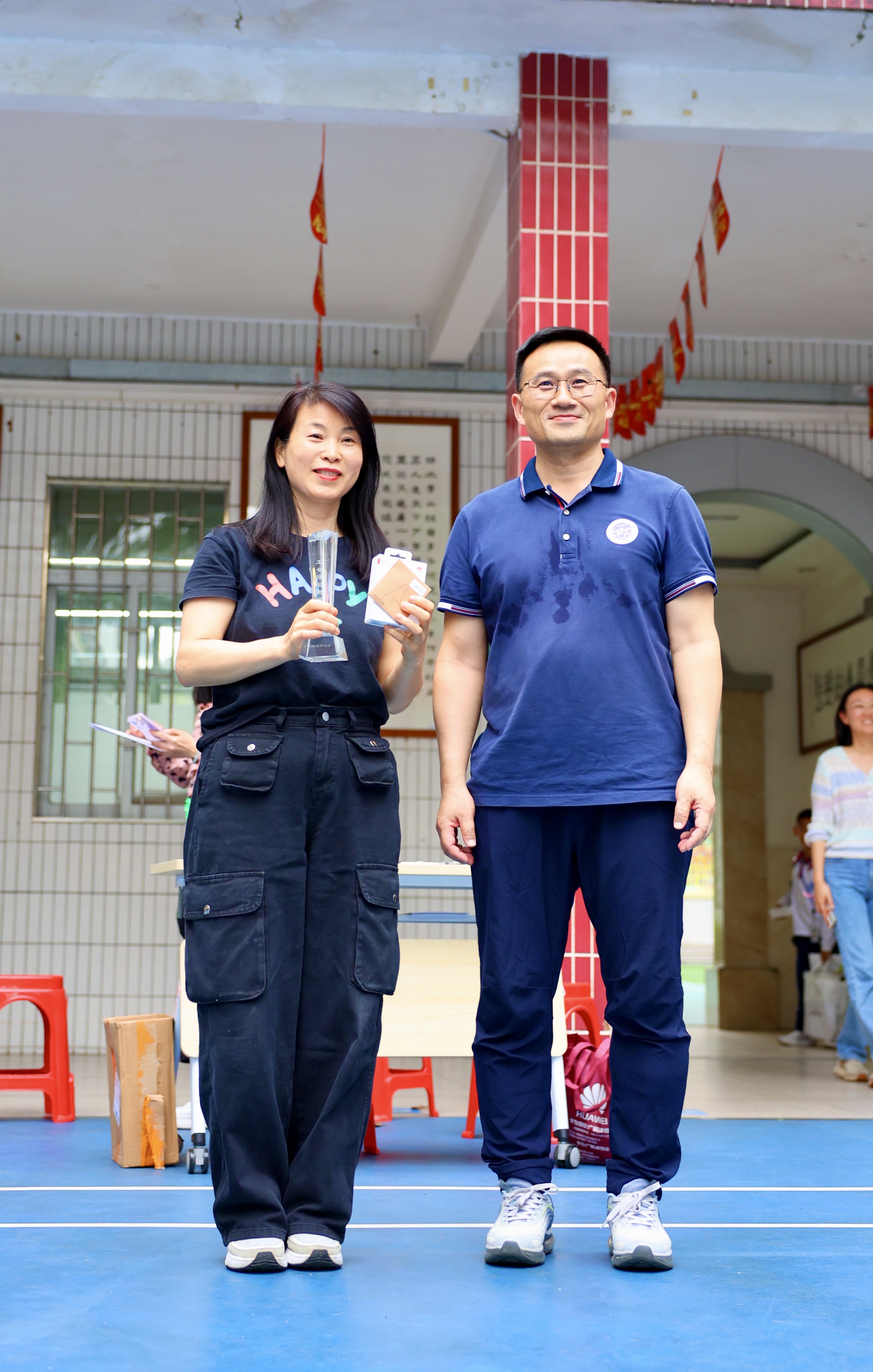 初赛日,各组斗智斗勇,积分厮杀;决赛时,羽毽如流星贯日,积分榜风云变幻。行政后勤组麦丹妹、谢元建、李小丽老师足下生风,毽球似灵蝶穿花,终以223记垫球摘得桂冠。六年级、七年级分获亚季军,九年级、二年级、八年级紧随其后。最惊艳者当属一年级罗燕维老师,足尖轻点如蜻蜓点水,一气呵成81记垫球,斩获“得分王”殊荣,华为手环加身,笑颜映夕阳。