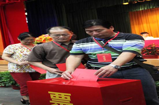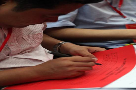 各代表团代表汇报及主席团会议认真填写选票投下神圣一票