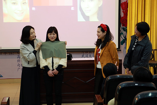曹怡曦以女性形象力的建立和影响为切入点,色彩搭配、服装款式、TPO(Time, Place, Object)着装礼仪和15分钟快速妆为主要内容,从色彩搭配、个人形象和风格几方面介绍了女性穿衣法则,还介绍了15分钟的生活妆快速化妆技巧。讲座过程中采用现场互动的方式,邀请在座女教职工亲身体验符合自身特点的服装搭配与化妆过程,帮助大家鉴别自己的形象特点,塑造女性完美形象和提升个人魅力。
