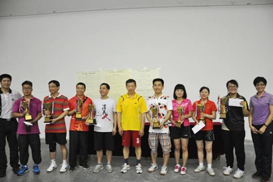 又讯 4月26日,2014年教职工乒乓球比赛在北校区举行,来自全校12个部门工会的乒乓球队参加了本次比赛。