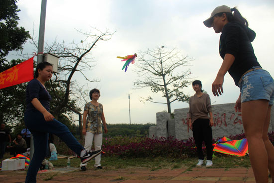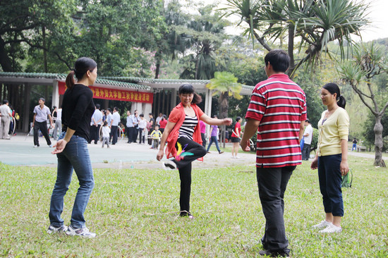 风高气爽,送来金秋。11月8日下午,全校教职工秋季健身活动在白云山上、小谷围岛火热展开。全校教职工暂时放下繁重的工作,结伴起行,登山游湖,放松身心。  呼啦圈我最在行!  我也要转起来!  许多教职工原来也是踢毽子的高手, 广外可谓是卧虎藏龙啊!  来,接稳我的毽子啦!  一起转,更精彩! 一起分享运动的乐趣吧!  秋风送爽,最适合放风筝了   抽奖环节-看!谁中奖啦? 编后语 秋高气爽时,正当游园季。虽无红叶做佳景,却得良伴来邀约。每年的秋季的教职工健身活动都给教职工们带来身心愉悦,为秋季描出一幅幅欢愉的景象。 |