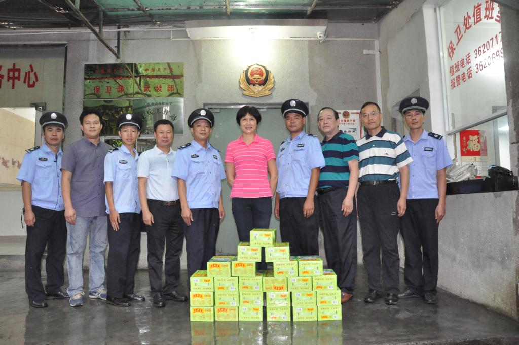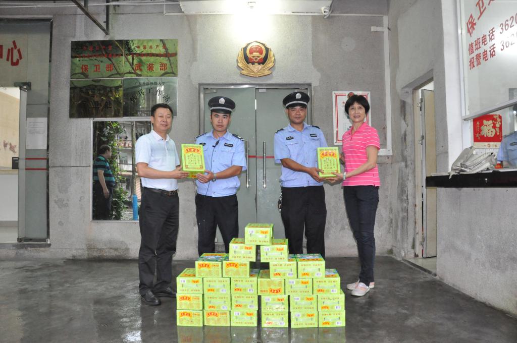BETVLCTOR伟德在线常务副主席林少娜、副主席杨冬生向校卫队员赠送了一批凉茶作为慰问品,嘱咐工作人员夏季高温工作中注意防暑降温、保重身体。